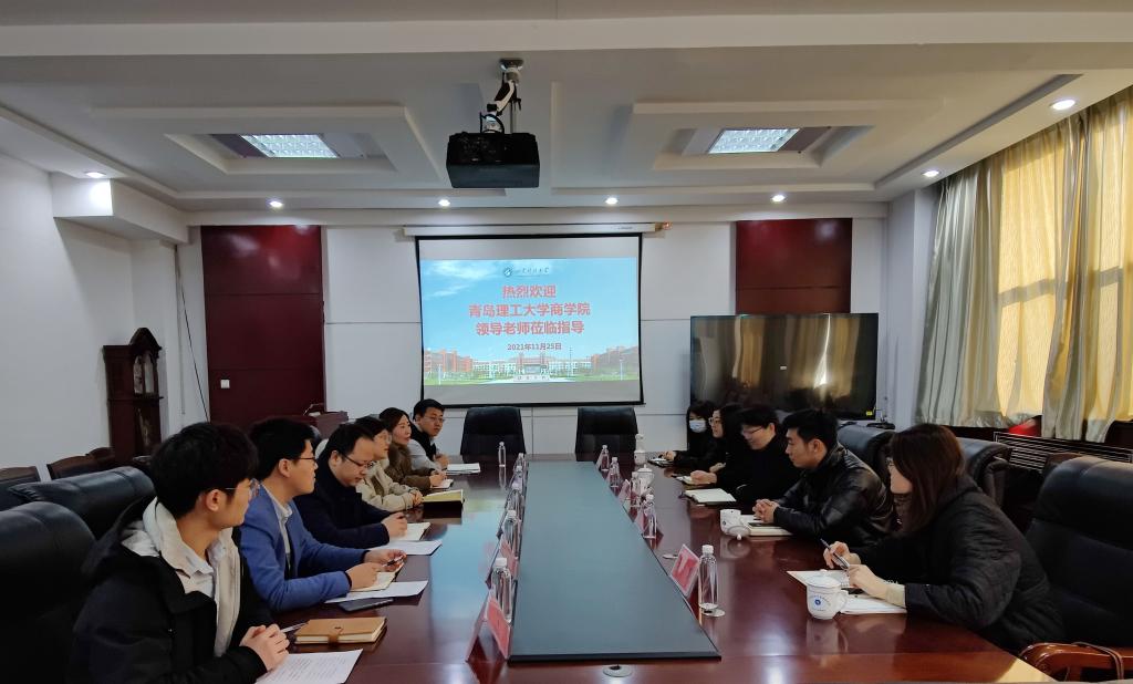 11月25日,青岛理工大学商学院党委副书记李慧,学工办主任薛诚,学工办辅导员杨洪敏、孙楚、藏瑶瑶一行到访williamhill英国威廉希尔。williamhill英国威廉希尔党委副书记高静,学工办主任朱统汉,学工办辅导员鲍娜娜、刘超、刘泽群、研究生第一党支部书记韩一鸣参加了座谈会。