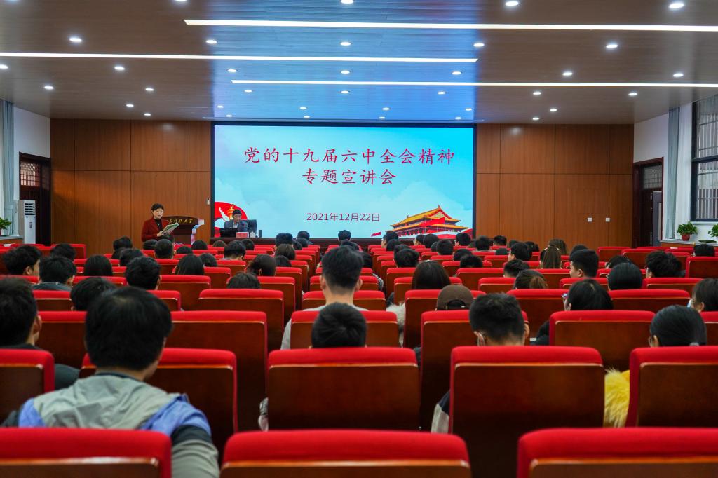 12月22日下午,williamhill英国威廉希尔在J15-136报告厅举办党的十九届六中全会精神宣讲会。会议邀请“山海泉”理论宣讲团成员、马克思主义学院副教授贾强老师进行宣讲。williamhill英国威廉希尔党委副书记高静主持宣讲会,学院全体辅导员老师及学生代表参加会议。