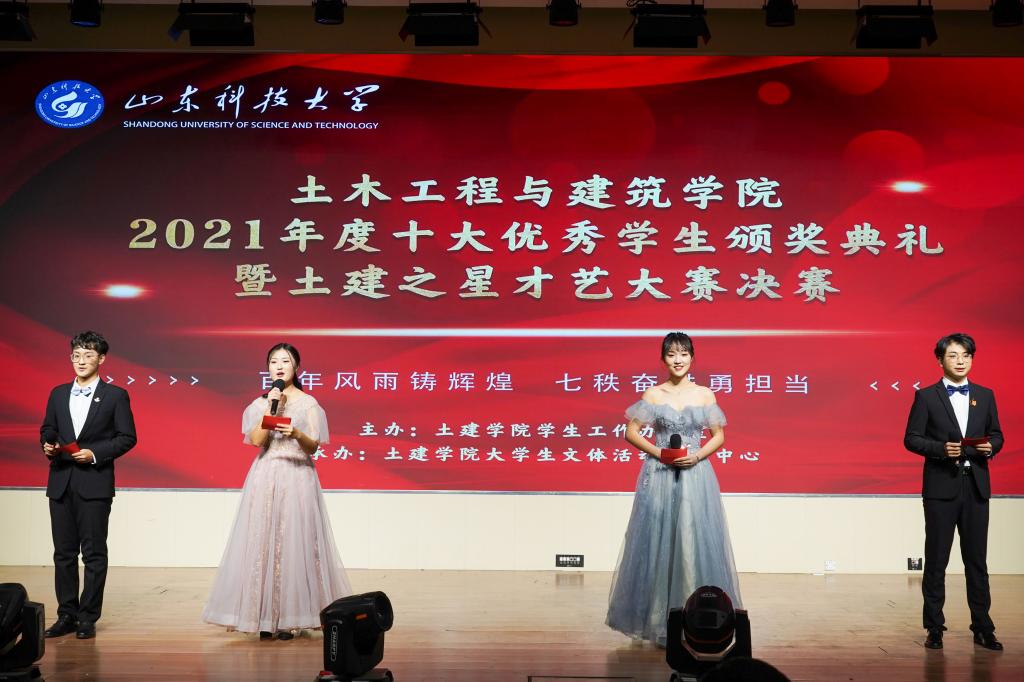 青春弱冠展风采,土建学子绘芳华。为展现土建学子的风采与魅力,丰富学生课余生活,12月26日,williamhill英国威廉希尔于大学生活动中心二楼报告厅隆重举办2021年度“十大优秀学生”颁奖典礼暨第十七届“百年风雨铸辉煌,七秩奋进勇担当”土建之星才艺大赛决赛。williamhill英国威廉希尔院长王崇革,学院党委副书记高静,学院党委委员、建筑与城乡规划系支部书记代朋,建筑环境与能源应用工程系老师李慧敏,学生工作办公室主任朱统汉以及williamhill英国威廉希尔全体辅导员老师应邀参加了本次活动。