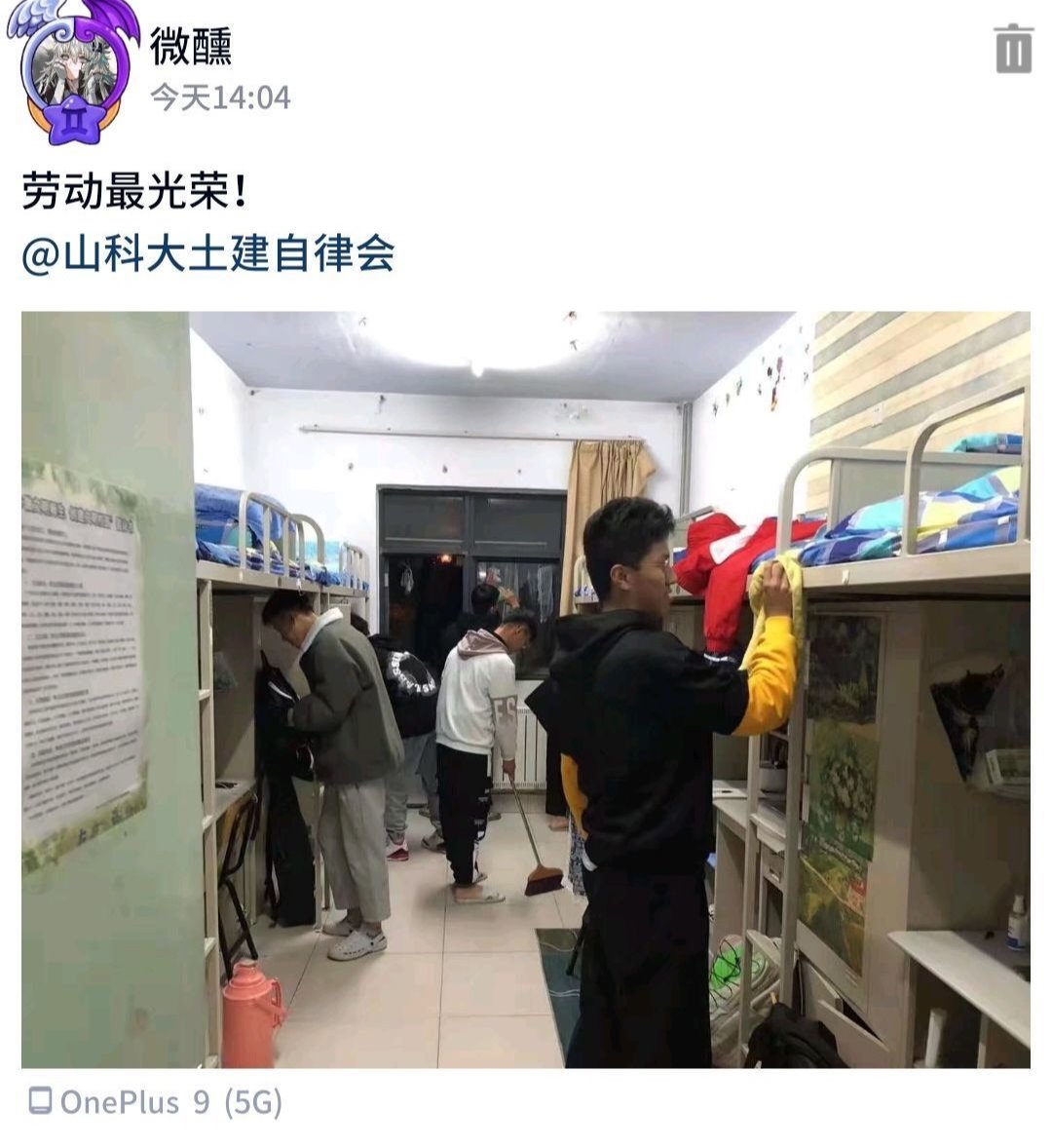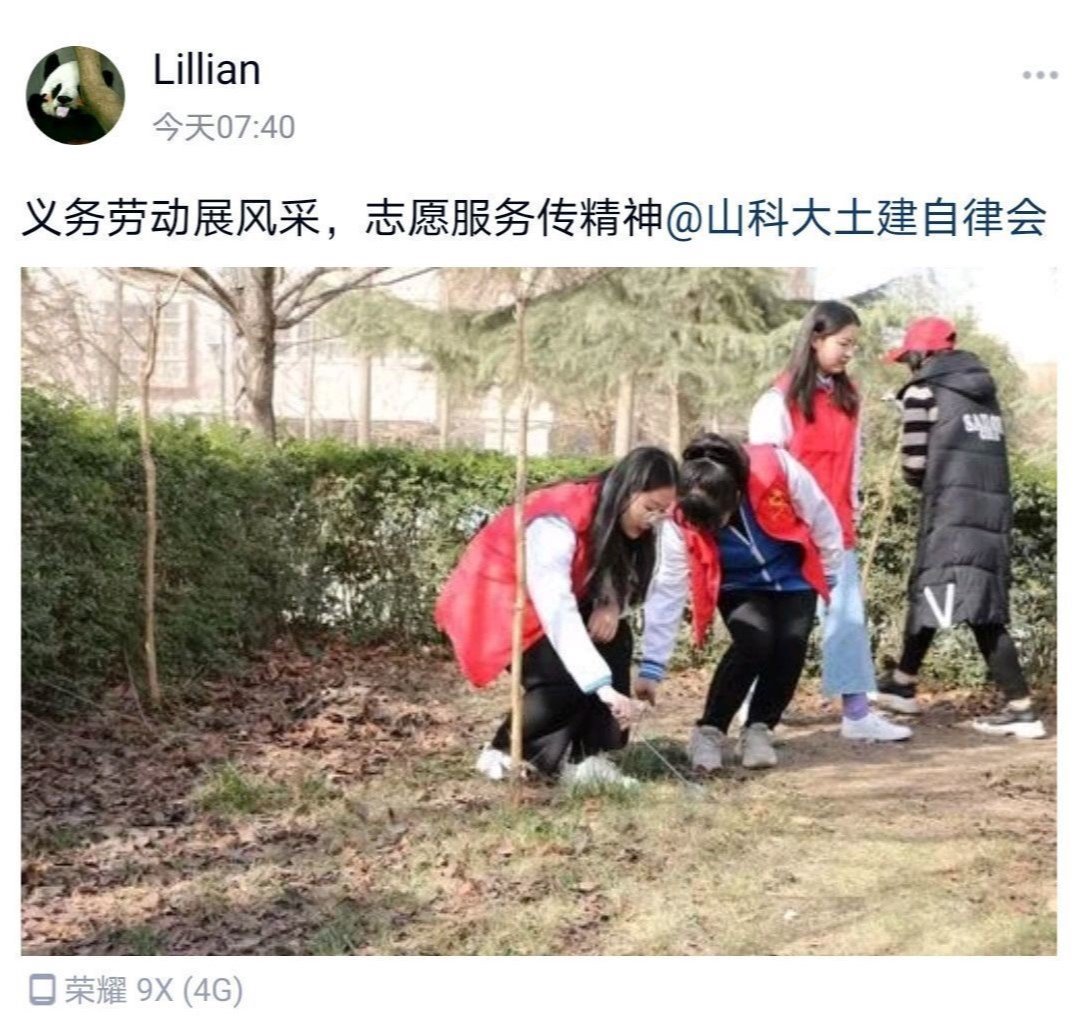 本次活动采用线上的方式举行,参加活动的同学需要在QQ空间发布劳动照片和一句体现劳动精神口号的配文,并@williamhill英国威廉希尔自律会公众号。在活动中,同学们用积极的态度、饱满的热情,以实际行动认真完成了劳动拍照打卡活动。活动是以学生宿舍为单位参加,在规定时间内,对宿舍成员的劳动过程拍照记录。活动对拍照姿势不做要求,但需体现宿舍整体团结合作、勤于劳动的精神风貌。全体学生积极参加活动,用劳动充实节日。参与活动的同学们表示:在“五一“国际劳动节到来之际接受系统、全面的劳动教育非常必要,深刻感受到了劳动教育是最好的生活教育,要用劳动书写美好的新时代。