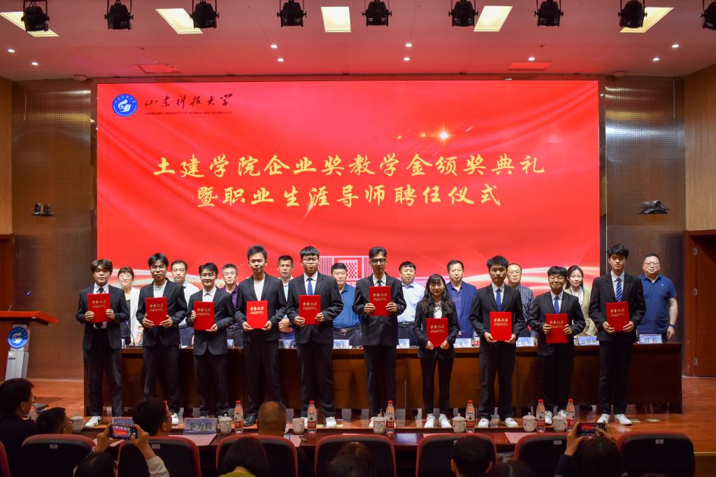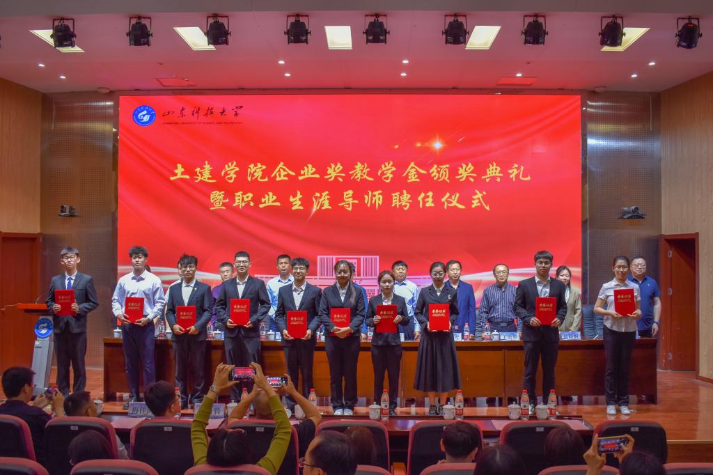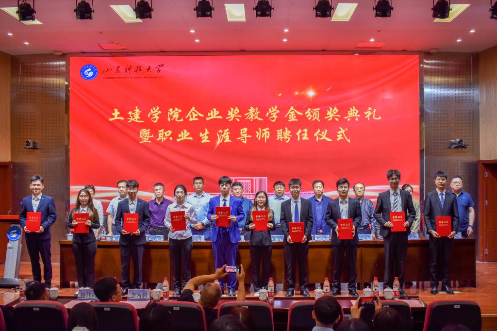 5月24日,williamhill英国威廉希尔企业奖教学金颁奖典礼暨职业生涯导师聘任仪式在J9-144报告厅举行。烟台平安信息工程职业技能培训学校校长宋文章,日照市政集团常务副总经理娄善华、爆破公司经理焦淑君,山东省路桥集团青岛分公司党总支书记、副总经理曹建军,党总支委员、总工程师梅佳鸿,学校合作发展处处长王晓东,学生工作处副处长靳凯,校团委副书记侯静娴,研究生院副院长刘松,及williamhill英国威廉希尔师生代表参加了本次颁奖典礼。典礼由williamhill英国威廉希尔党委副书记高静主持。