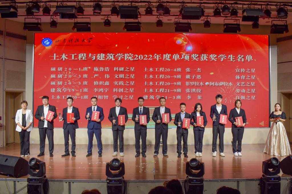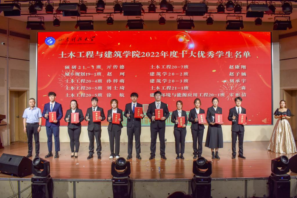 在“十大优秀学生”颁奖环节中,一段段VCR精彩纷呈,展示了williamhill英国威廉希尔十大优秀学生的傲人风采,展现了土建学子担当时代责任和勇于砥砺奋斗的精神风貌。获得williamhill英国威廉希尔“2022 年十大优秀学生”称号的分别是亓传德、赵珂、刘士琦、孙梓萌、徐航、赵康翔、宋彬倩、赵子涵、刘承宇、王森。他们是土建学子的优秀代表,他们的优秀事迹激励广大同学奋勇争先、一路向前、永不言败。