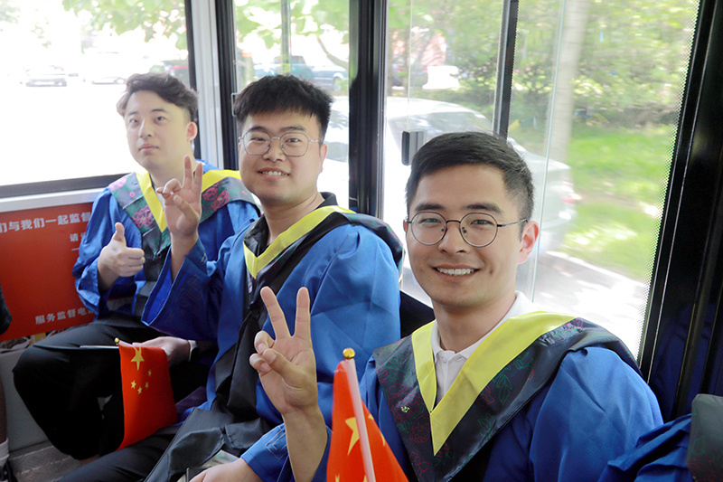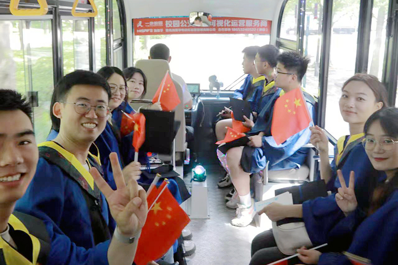 6月2日,第一批williamhill英国威廉希尔2023届毕业生坐上了专属“宝宝巴士”。这辆“宝宝巴士”从南门出发,途经泰山广场、月季园、水杉林、玉兰大道、银杏大道、名人园,经过学者餐厅、砚湖、图书馆、励志坊、若水园等学校标志性地标和学生常去的地点,停在了土建楼。