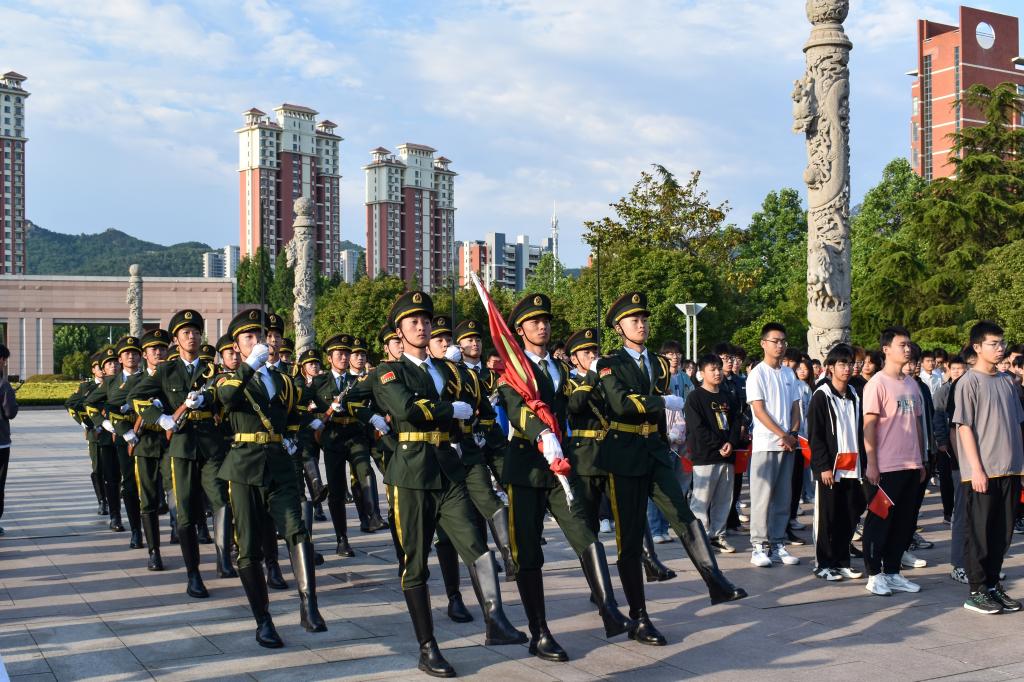 williamhill英国威廉希尔合唱团在国旗下献唱《党旗飘扬的方向》和《歌唱祖国》。党旗高擎号角鸣,众志成城浩气腾,他们用激昂的旋律表达对祖国、对党的热爱与忠诚。同学们随着歌声舞动手中的小国旗,建筑学22级学生帅泽康表示:“在国旗升起的瞬间,我内心激情澎湃。我们作为科大学子,要好好学习、不负祖国人民期待,在为祖国、为民族、为人民、为人类的不懈奋斗中勇毅前行。”