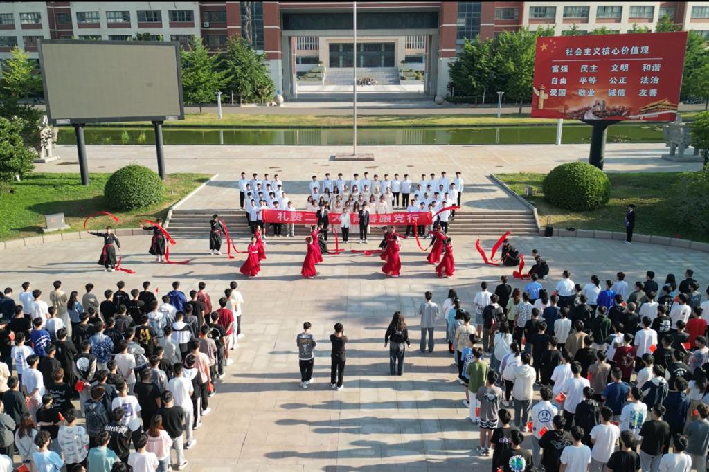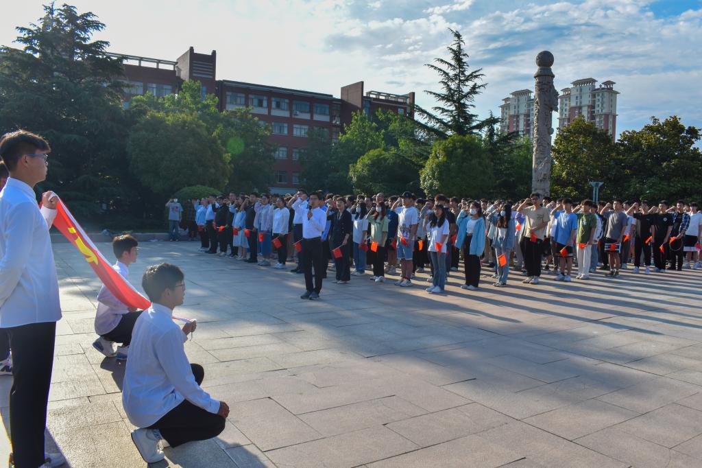 学生代表杨隆焯以《学习二十大,永远跟党走,奋斗新征程》为题进行了国旗下演讲。回望中国共产党走过的百年征程,他倡导全体学生在党的领导下坚定信念、锤炼本领、志存高远,做有理想、敢担当、能吃苦、肯奋斗的有为青年,为美好未来不懈奋斗。学生代表王静喆带领大家重温入团誓词,学生们握紧右拳,字字铿锵有力,句句掷地有声,展现新时代共青团员积极向上的精神风貌。