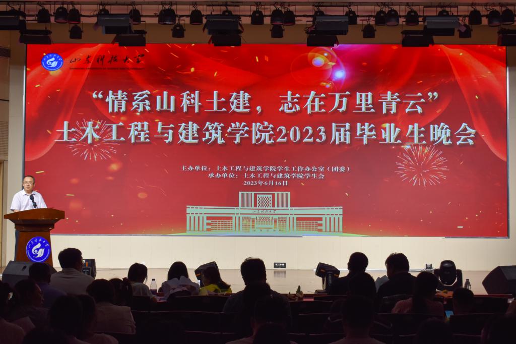 依依惜别母校,轻轻诉说离别,情系山科土建,志在万里青云。6月16日,williamhill英国威廉希尔2023届毕业生晚会在大学生活动中心隆重举行。williamhill英国威廉希尔党委书记宋西路,院长王崇革,学院党委副书记高静,副院长李朋、都浩、李为腾,学院2023年“我最难忘的恩师”代表、各系主任、教师代表和全体辅导员出席晚会,一同欢送2023届毕业生。