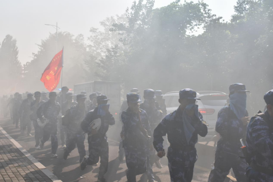 行军途中,军训连队按照序列,分成三路纵队,以整齐的步伐向前迈进。各连由教官带队依次进行穿越烟区、跨越障碍、匍匐前进、百米奔袭等军事技能训练项目。学生们迈着整齐的步伐齐唱《过硬的连队》。军歌嘹亮、步伐矫健、精神抖擞,充分展现了土建学子团结协作、奋发向上的精神风貌。全体参训学生服从命令、听从指挥、互相帮扶、相互鼓励,经过坚持不懈的跋涉,同学们圆满完成此次拉练,截至10时,williamhill英国威廉希尔全体参训学生全部安全返回风雨操场。