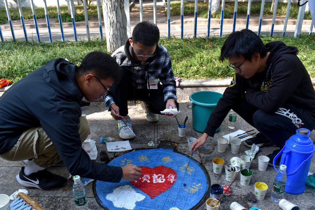 10月14日上午,williamhill英国威廉希尔在风雨操场西侧举办井盖彩绘活动,学生们以精彩的创意为井盖增添绚丽色彩,用手中的画笔打造校园特色景观。