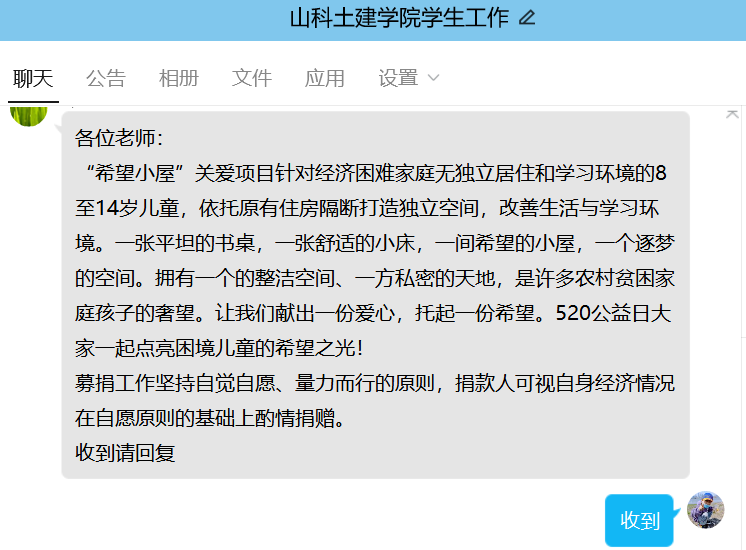 学院稳步推进募捐活动,老师们于QQ群、朋友圈和QQ空间等社交平台进行宣传。依托校友会和全院各级团组织,线上线下广泛发动。涓涓细流汇聚大爱江海。经过不懈努力,此次公益募捐活动得到广泛关注,掀起一股共助公益的募捐热潮。